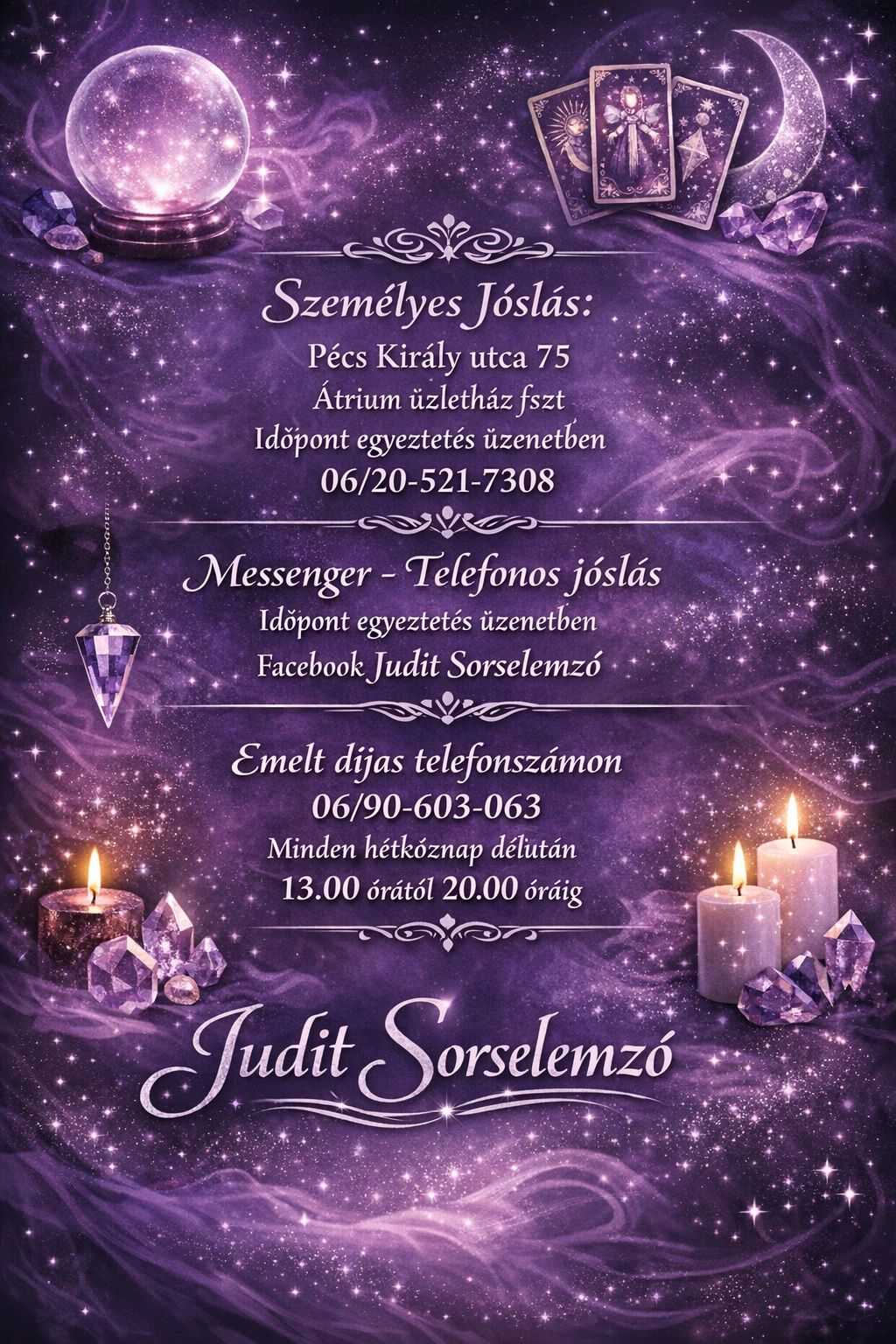 Több mint 14-éve foglalkozom Ezotériával. Kártyajóslással. Mágiával. Pécsen élek, és dolgozom, mint Sorselemző-Mesterjós. Sok embernek segítek nap mint nap a jövőt illetően, és hogy megtalálják a helyes utat az életükben.
